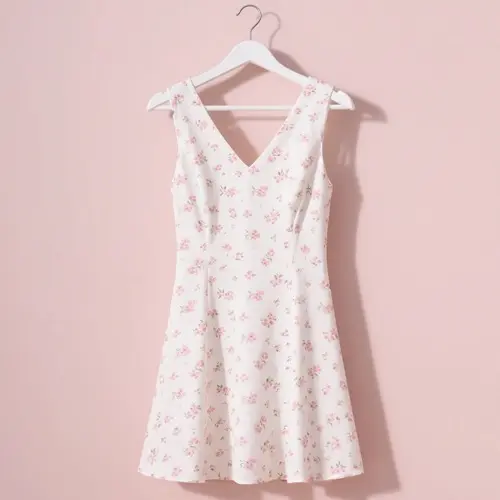 A字剪裁顯瘦修身,小V領設計拉長頸部線條,清新碎花圖案夏日感十足,度假約會首選!